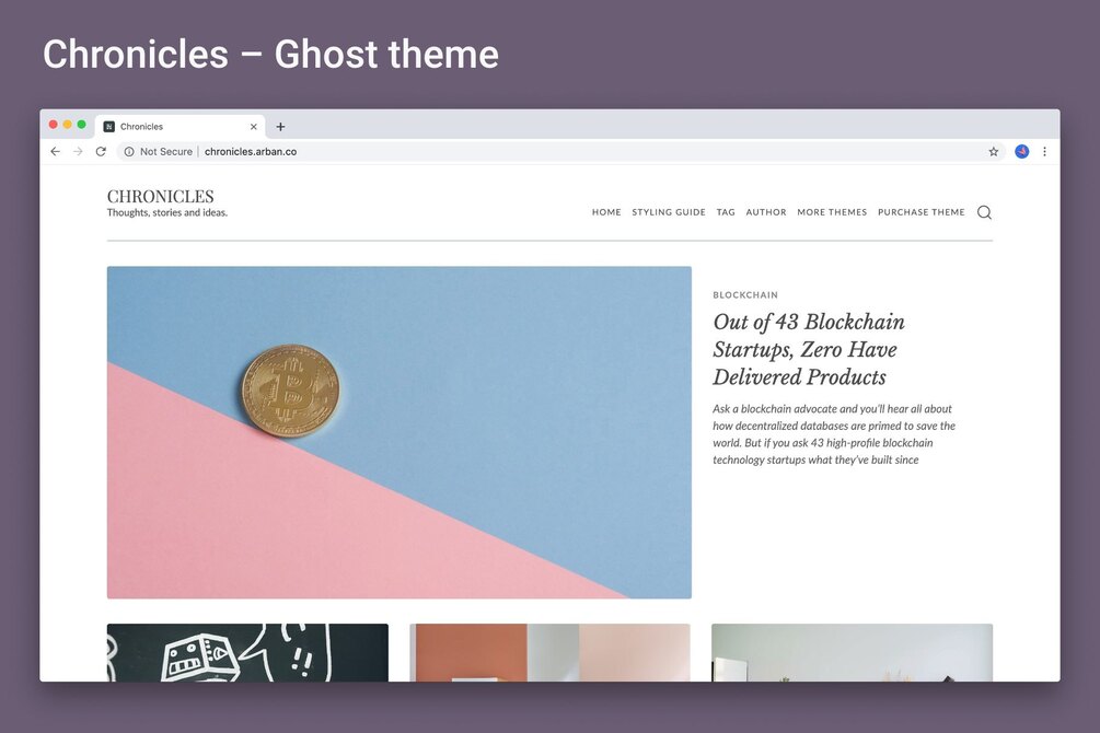 Chronicles is a multipurpose ghost theme, most suitable for building online publications, journals, and professional blogs.